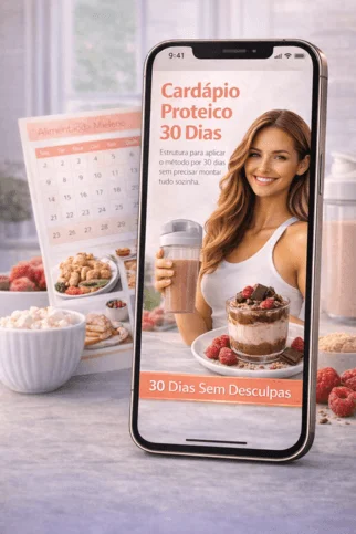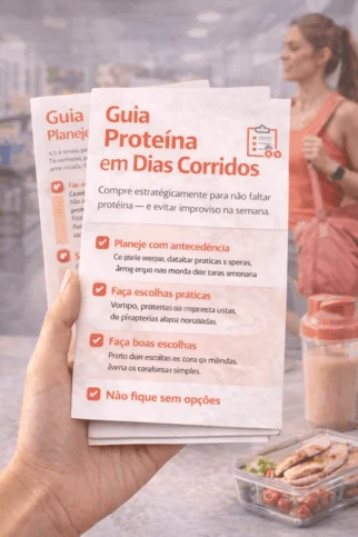 Você aprende a distribuir sua proteína ao longo do dia de forma inteligente, evitando compensações noturnas e excesso de shake.