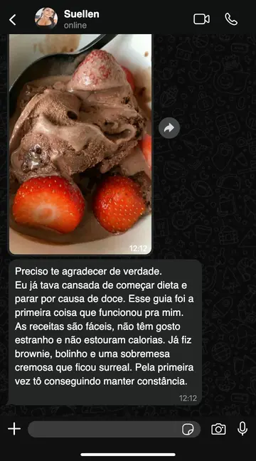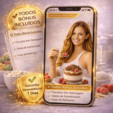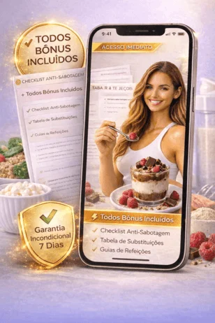 Não. Você aprende a encaixar refeições reais, substituições e até doces proteicos sem depender de restrições extremas.